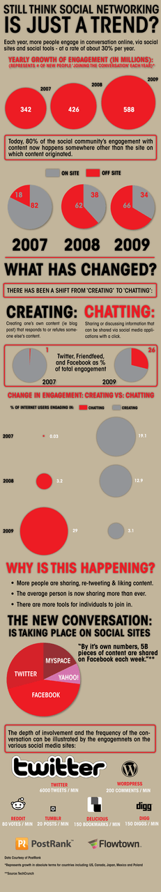 Posted on February 25, 2010September 6, 2015 by m1k3y wildcat2030: still think social networking is just a trend?- massive infographics (via dataviz) Share this: Click to share on X (Opens in new window) X Click to share on Bluesky (Opens in new window) Bluesky Click to share on Tumblr (Opens in new window) Tumblr Click to share on Facebook (Opens in new window) Facebook Click to share on Reddit (Opens in new window) Reddit Click to email a link to a friend (Opens in new window) Email Like Loading... Related