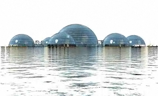 His design consists of eight living biomes surrounding one larger, central biome full of control equipment. The smaller biomes would be where people would live and experiments would take place. And through an “innovative control of variant atmospheric pressures that occur at depth,” the entire thing would be self-sustainable, generating its own electricity and other resources. (via Hey, James Bond villains: here’s how you build an ocean fortress | DVICE)