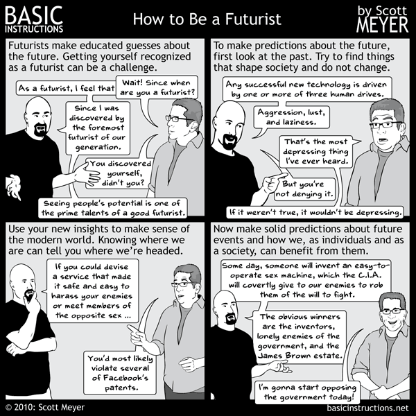 Posted on August 5, 2010September 6, 2015 by m1k3y Basic Instructions – Basic Instructions – How to Be a Futurist Share this: Click to share on X (Opens in new window) X Click to share on Bluesky (Opens in new window) Bluesky Click to share on Tumblr (Opens in new window) Tumblr Click to share on Facebook (Opens in new window) Facebook Click to share on Reddit (Opens in new window) Reddit Click to email a link to a friend (Opens in new window) Email Like Loading... Related