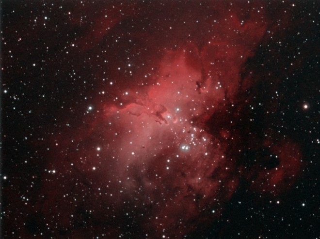 This stunning shot of the Eagle Nebula […] was captured by Iain Melville with a Williams Optics FLT 110 telescope and a SXV-H9 Starlight Express camera. Melville took a total of eight 10-minute exposures, four in a hydrogen alpha filter and four in color. (via Reader Photo Gallery: DIY Astrophotos From Star-Geek Campout | Wired Science | Wired.com)