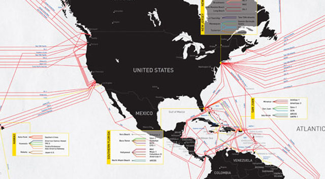 There are only a limited number of cables leading out of the U.S. to other parts of the world (see cable map above). Physically cut them and you’ve got what network geeks call “an air gap.” No network traffic can cross the empty air between the cable’s severed ends.