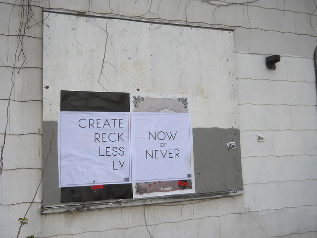 Posted on March 18, 2012September 6, 2015 by m1k3y create recklessly by brucesflickr on Flickr. Share this: Share on X (Opens in new window) X Share on Bluesky (Opens in new window) Bluesky Share on Tumblr (Opens in new window) Tumblr Share on Facebook (Opens in new window) Facebook Share on Reddit (Opens in new window) Reddit Email a link to a friend (Opens in new window) Email Like Loading... Related