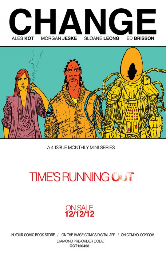 I’m working on CHANGE with Morgan Jeske on art, Sloane Leong on colors, Ed Brisson on lettering and Jordie Bellaire on cover colors. We will appreciate your support. If you grab the first issue and it won’t work for you, email me at aleskotsays at gmail and I’ll paypal you back your money.