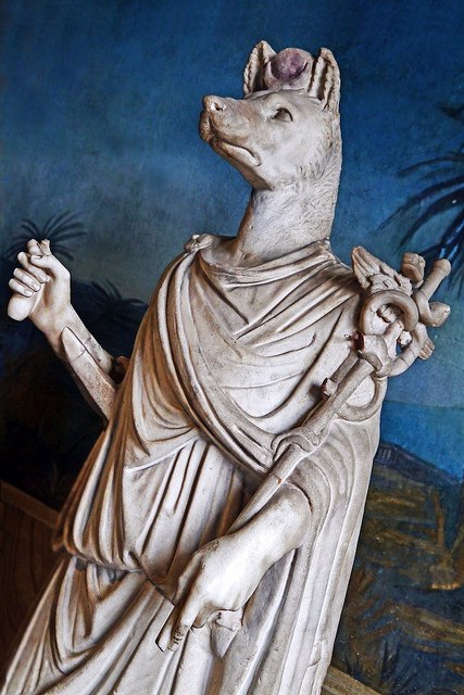 In classical mythology, Hermanubis was a god who combined Hermes (Greek mythology) with Anubis (Egyptian mythology). He is the son of Set and Nephthys.