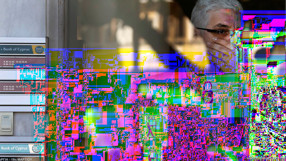 An employee looks out at people and reporters gathering outside a Bank of Cyprus branch before it opens in Nicosia. Security is tight in Cyprus as banks prepare to reopen nearly two weeks after closing while a controversial international bailout was negotiated.