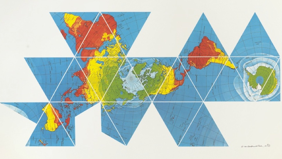 Buckminster Fuller’s “Dymaxion Map” turns many of our assumptions about world maps on end, for considerable benefit; landmasses experience the least distortion of any projection, and are almost entirely contiguous. Furthermore, it folds into a perfect icosahedron, for viewing in the round.