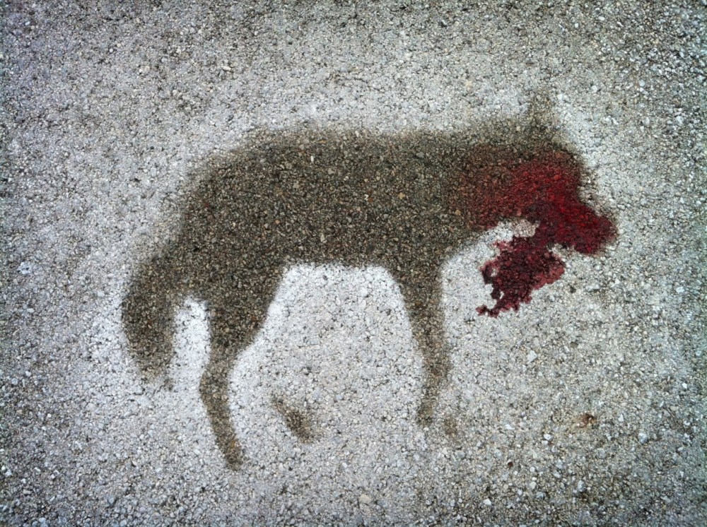 Dylan Menges snapped this haunting silhouette left behind when he moved the still-warm corpse of a roadkilled coyote: “She hadn’t been there long and moving her carcass off the road revealed the salty silhouette from passing cars on a winter highway.”