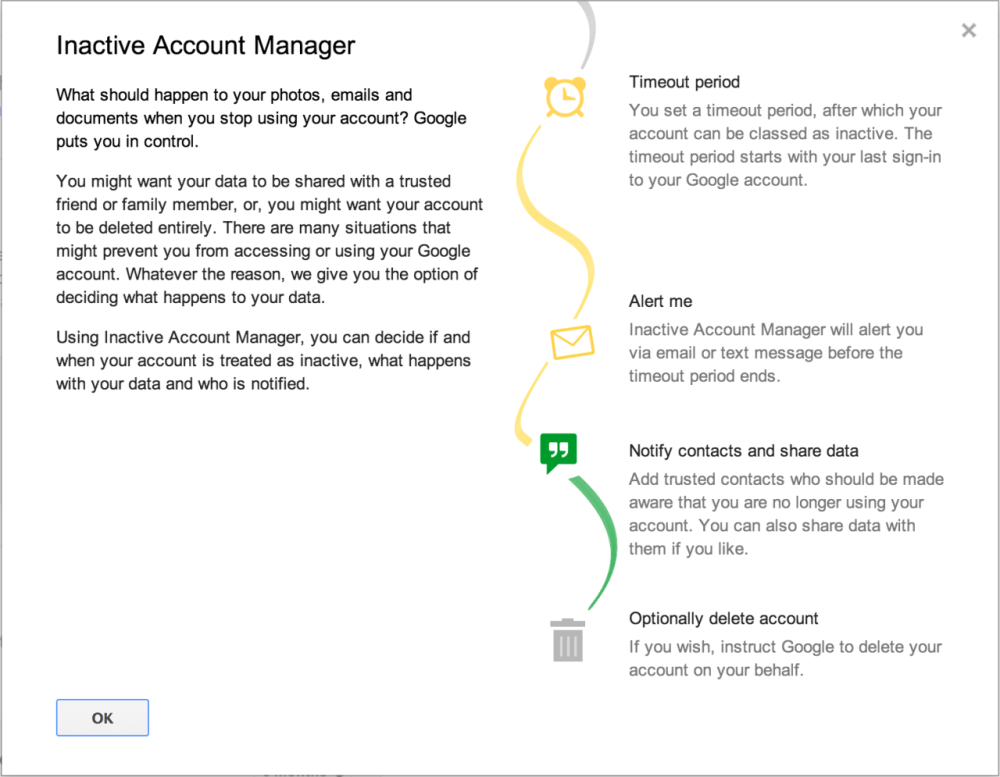 Posted on April 16, 2013September 6, 2015 by m1k3y new-aesthetic: Inactive Account Manager: After a Google User Dies, A Will for Their Google Data Share this: Click to share on X (Opens in new window) X Click to share on Bluesky (Opens in new window) Bluesky Click to share on Tumblr (Opens in new window) Tumblr Click to share on Facebook (Opens in new window) Facebook Click to share on Reddit (Opens in new window) Reddit Click to email a link to a friend (Opens in new window) Email Like Loading... Related