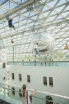 In one of his most ambitious suspended installations to date, artist Tomás Saraceno (previously) launches visitors at the K21 Staendehaus museum in Düsseldorf more than 65 feet (20 meters) above the main piazza with a taunt, multi-level web of netting. Titled In Orbit the giant interactive piece is constructed from three separate levels of safety nets accessible from various points in the museum separated by enormous PVC balls measuring almost 30 feet (8.5 meters) in diameter. The resulting aerial landscape is an interesting hybrid between science fiction, spider webs, neural pathways and cloud formations.