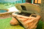 Henderson’s underground retreat includes a pool, two jacuzzis, a sauna, an outdoor BBQ grill inside a large fake rock, a dance floor, a putting green in the garden, adjustable light settings to match various times of the day and a hand-painting 360-degree mural of locations familiar to Henderson. A one-bedroom guest cabana is located beside the pool.
