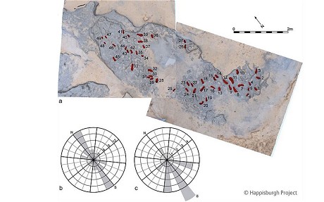 The tracks include up to five different prints, indicating a group of both adults and children walked across the ancient wet estuary silt.