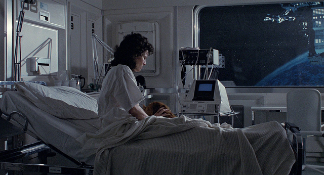 Ripley, recovering from an usually long hypersleep (57 years), has a bed in a hospital in space with a view.