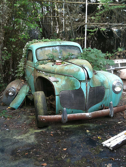 “He would sit outside in this chair and honk an old bicycle horn every time a car passed, hoping to generate traffic into his…musuem I guess. Mr. Vlachos was an inventor who invented a flying car, and an engineless car, among other things. His inventions never came to fruition, as far as I know… but I spent well over 2 hours with him that day and the passion still burned within him. I can still feel his grip on my arm as he told me of his life.”